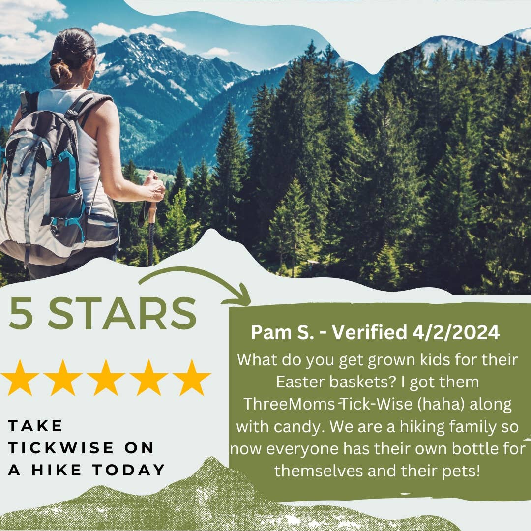 It offers excellent visibility and convenience for your customers on the go! TickWise Repellent Good For You & Good For The Planet 🌎 -Made with Clean, Natural, Non-GMO Ingredients -MADE SAFE certified -Our proprietary blend of pure and natural essential oils -Proven Strong and Effective Against Ticks, Mosquitoes, and other biting insects. -Fantastic for the whole family - safe for kids, dogs, horses too. -Great for all your outdoor adventures! -Smells fantastic (fresh and lemony with a hint of vanilla) -Vegan and free of nuts, soy, gluten, and dairy -Alpha-Gal (meat allergy) safe -We are a proud certified Women-Owned Small Business -Made in the USA TickWise Premium Insect Fighting Ingredients: Cedarwood Oil, Geranium Oil, Citronella Oil, Peppermint Oil, Lemongrass Oil, Rosemary Oil, Water, White Vinegar, Vanillin, and Plant-Based Glycerin.