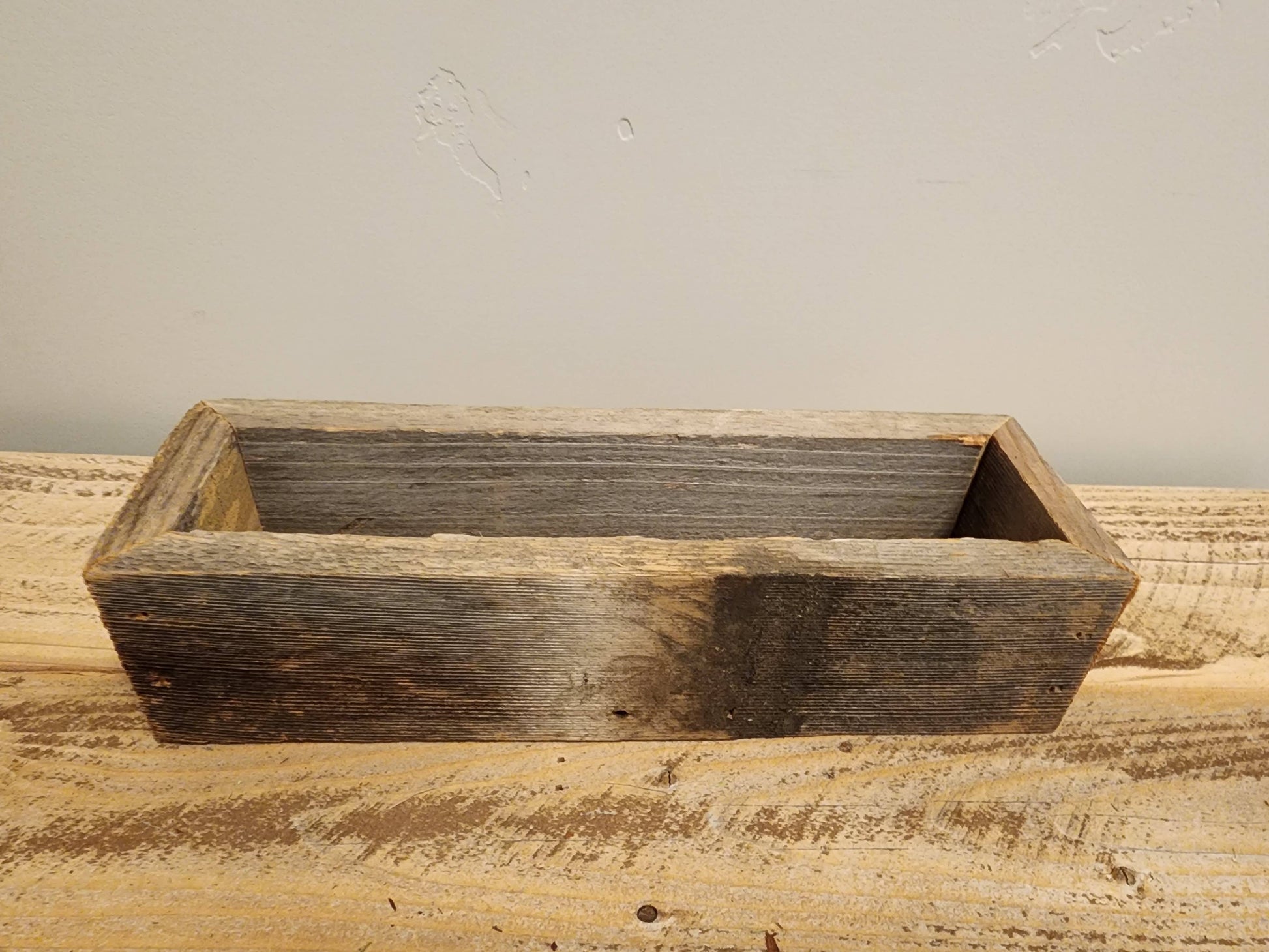 Our rustic planter boxes in this size can hold up to Five 2" grow pots, either square or round. Great as succulent planters, or as a table centerpiece planter. Popular as a gift planter and wedding decor. Each is made from 100% reclaimed wood. Small imperfections, such as nail holes and or knots add the rustic and authentic character of each piece. Measures approximately 11.25"W x 3.5" D x 2.75"H. Since it is made from naturally weathered wood, it looks at home indoors or out and can withstand all the weather elements. Proudly made by right here in the USA, no two will look exactly alike. Corners are cut at 45-degree angles and the salvaged wood used is 5/8" thick. These are sturdy planters. *Plants are not included