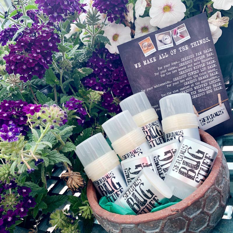 Are you looking for an all-natural, grease-free, simple way to keep those biting jerkface bugs from ruining your beautiful spring and summer days? We've got you covered! Our amazing Bug Stuff glides on like a balm in a tube and will keep you bug-free for hours, from mosquitoes to gnats and all the rest!