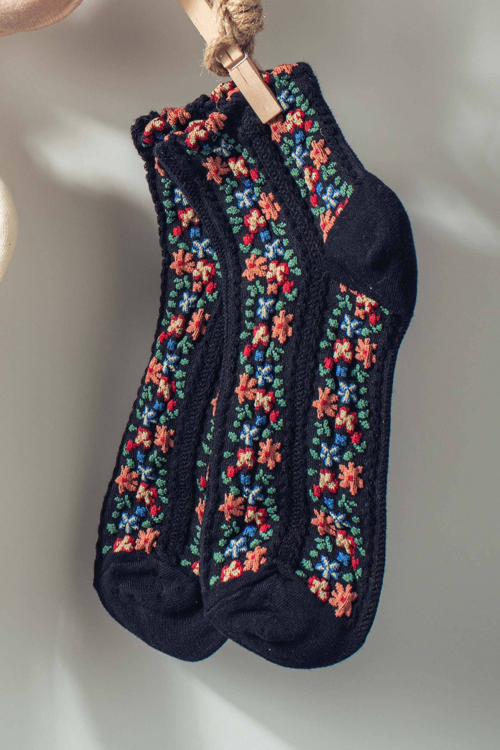 Each pair features delicate floral patterns in vibrant hues and a romantic scalloped trim that peeks out perfectly from loafers or boots. Features: • ONE SIZE • Floral embroidery with scalloped edge finish • Soft cotton blend for breathable comfort • Made in China Fit: One size fits most. Ankle-length with a gentle, non-restrictive cuff for all-day wearability.